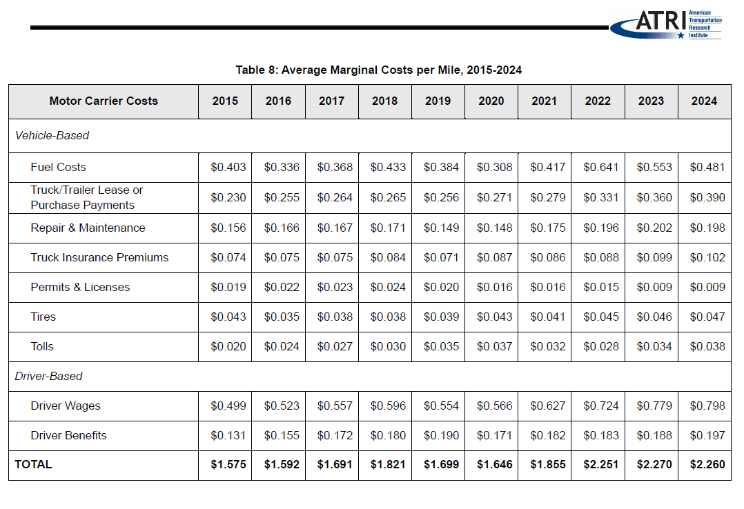 According to the most recent benchmarking report on trucking operational costs by ATRI, increasing expenses have come up against falling freight rates. Data indicates that the average operating cost for trucks in the industry has decreased marginally by 0.4%, now standing at $46.4 per mile. That’s encouraging news, but the real challenges are in the specifics. Excluding lower fuel costs, marginal costs rose by 3.6% to $1.779, marking the highest non-fuel operating costs documented by ATRI. The report indicated that truckload carriers experienced the most significant impact on their operating margin (OR), with an average OR of -2.3% in 2024, down from 3% in 2023 and 8% in 2022. Various sectors experienced a decline in operating margins, with many struggling to maintain margins under 2%. The LTL sector was the only one to sustain a positive profitability, achieving an OR of 543%. Meanwhile, reefer carriers saw their OR decrease from 6% in 2022 to 2% in 2023, ultimately stabilizing just above breakeven at 0.1%. The Flatbed/Oversized segment experienced a comparable pattern, decreasing from 7% in 2022 to 5% in 2023, before rising to 8.43% in 2024. (Source: ATRI). “Groendyke Transport, Inc. stated that the trucking sector is experiencing its toughest freight market in years, characterized by a decrease in loads and rising expenses.”