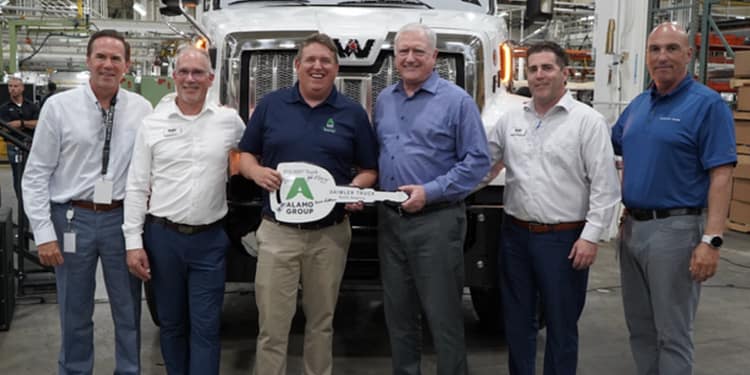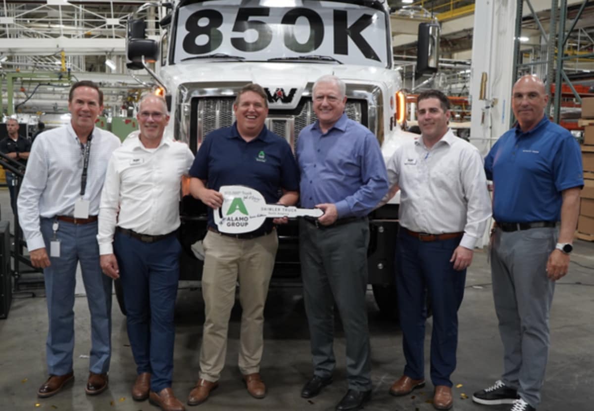 The milestone vehicle – a Western Star 47X – was delivered to Alamo Group, a long-standing DTNA customer. The truck will be provided to Alamo Group’s Snow & Ice Team, a leading North American manufacturer of heavy-duty snow and ice removal equipment. Alamo Group, is headquartered in Seguin, Texas.
