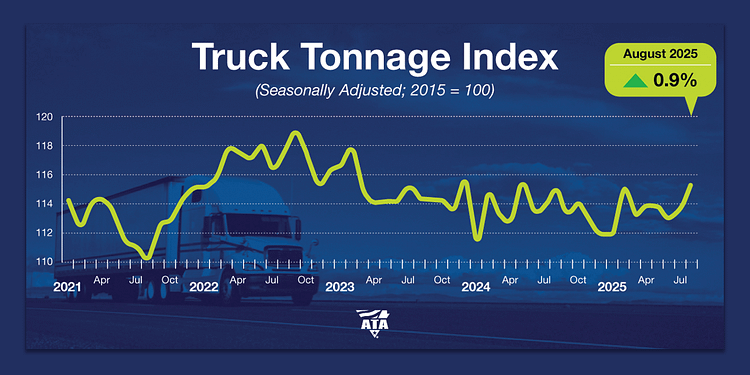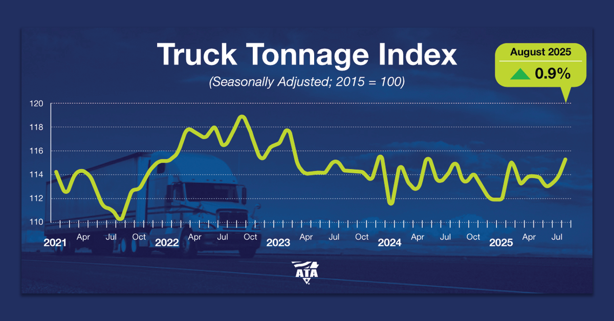 Trucking activity in the United States increased again in August, pushing the level up to the highest point since December 2023. Specifically, truck freight tonnage rose 0.9% after gaining 1.1% in July, according to the American Trucking Associations’ advanced seasonally adjusted For-Hire Truck Tonnage Index.