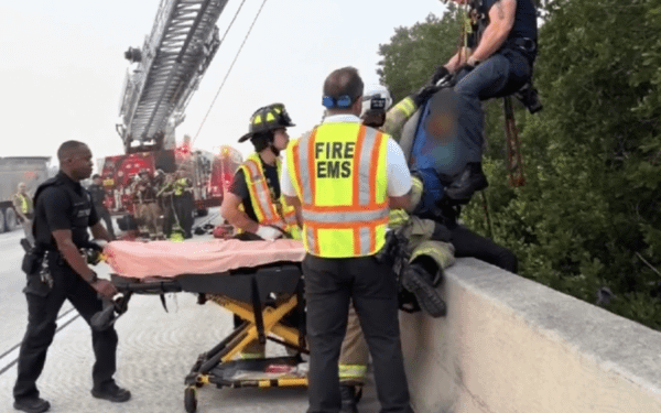 “The tactic itself was basically to use an aerial device and create a high angle rescue point at high anchor point, and then we put rescuers on rope, and we lowered them down to the patient to be treated, packaged, and then hauled up over the wall of I-75,” said Burke.