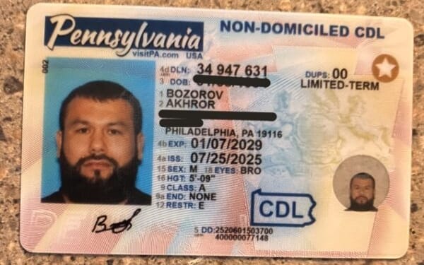 Bozorov possessed a Pennsylvania-issued non-domiciled commercial driver’s license (CDL) and was granted work authorization in January 2024, according to the U.S. Department of Homeland Security (DHS).